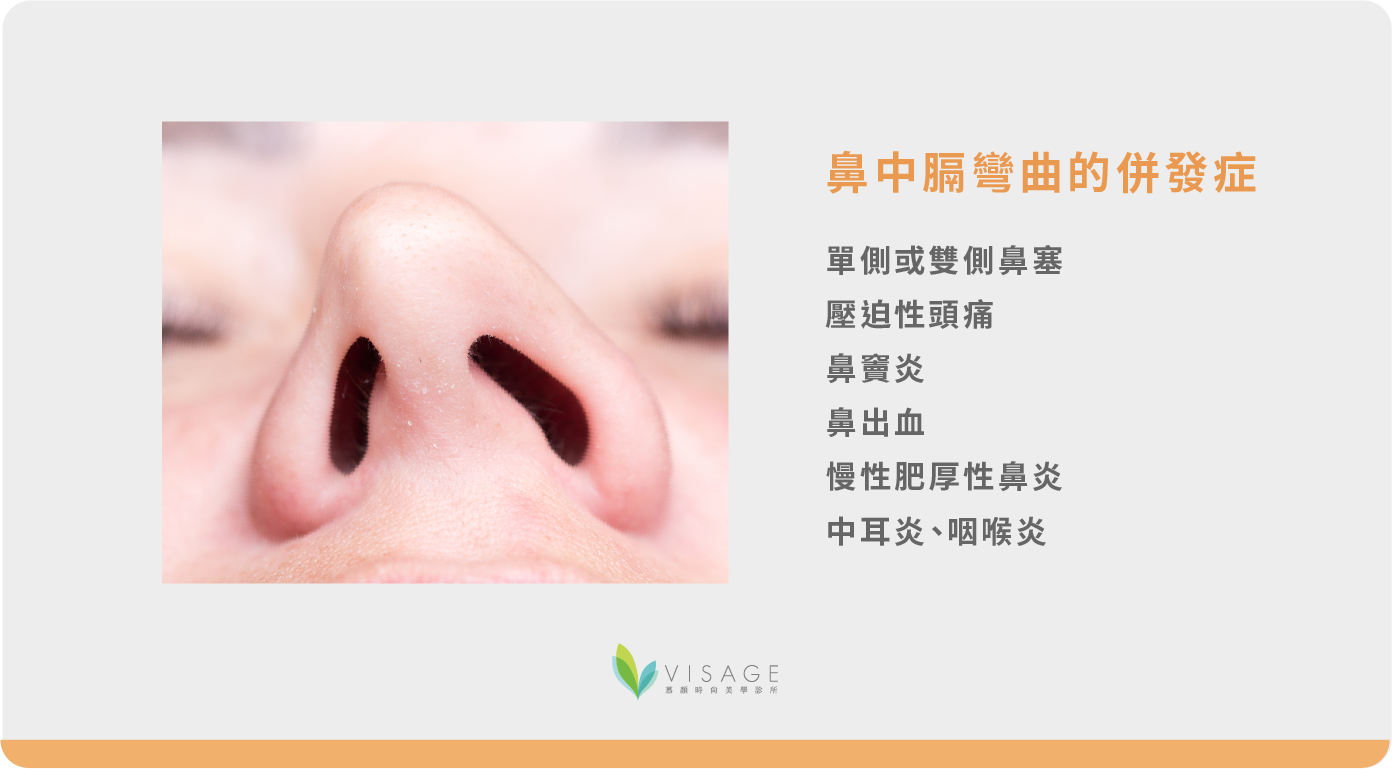 嚴重的鼻中膈彎曲會影響鼻竇的排泄作用,長期來說就可能引發鼻竇炎。 - 鼻出血