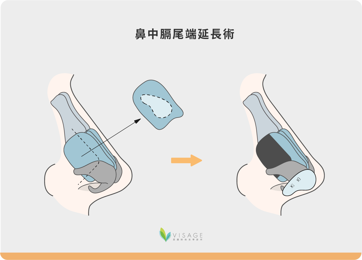 鼻中膈尾端延長術Caudal septal extension graft 是在鼻中膈尾端放置自體軟骨或植入物,主要目的在於強化與延長鼻中膈尾端的支撐結構,進而調整鼻尖位置、改善鼻型比例,甚至幫助提升鼻子的整體美觀與功能性。