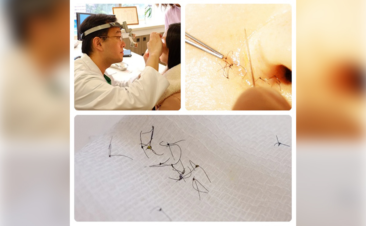 傷口或疤痕不算礙眼, 但可清晰看到黑色的鏠線(看起來好像外露的鼻毛…),