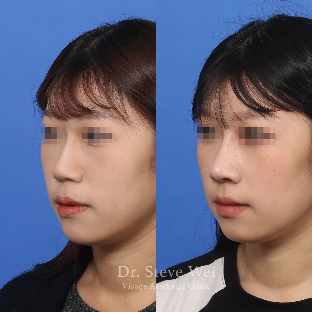 這位案例的原生鼻型條件不差,山根高度足夠,但因鼻頭缺乏立體度,使整體線條略顯扁平,少了精緻度與層次感。